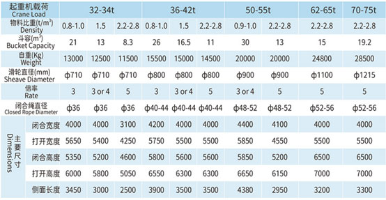 四索雙瓣抓斗技術(shù)參數(shù)